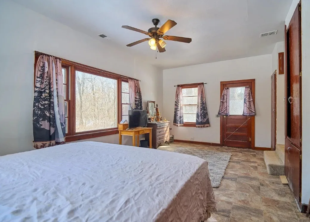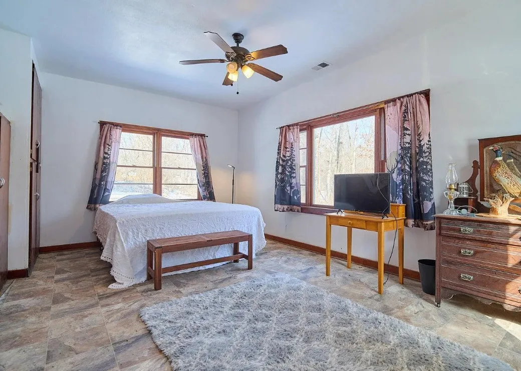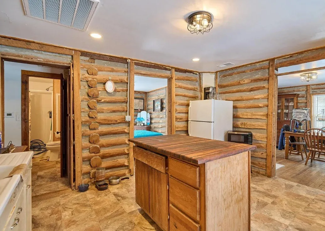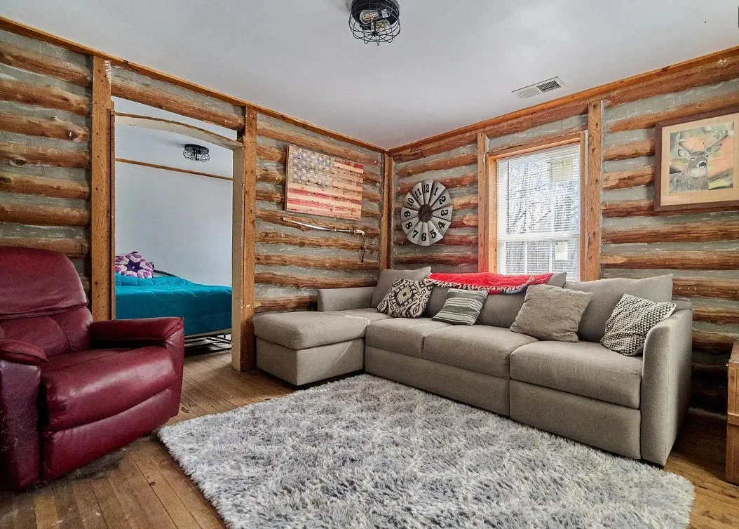 Step back in time without giving up modern comfort in this beautifully preserved 1908 log cabin set on 13 surveyed acres. Rich with character and craftsmanship, this historic home blends rustic charm with thoughtful updates, including HVAC, double-pane windows, added insulation, and a water softener—making year-round living comfortable and efficient.A cozy wood stove anchors the cabin, perfect for crisp evenings and adding to the authentic cabin feel. The land is a true highlight, featuring a seasonally wet pond that attracts wildlife and enhances the natural setting. Outside, the property is well-equipped for work, storage, or hobbies with multiple outbuildings and an impressive 18′ x 45′ RV storage building, ideal for RVs, boats, or equipment.