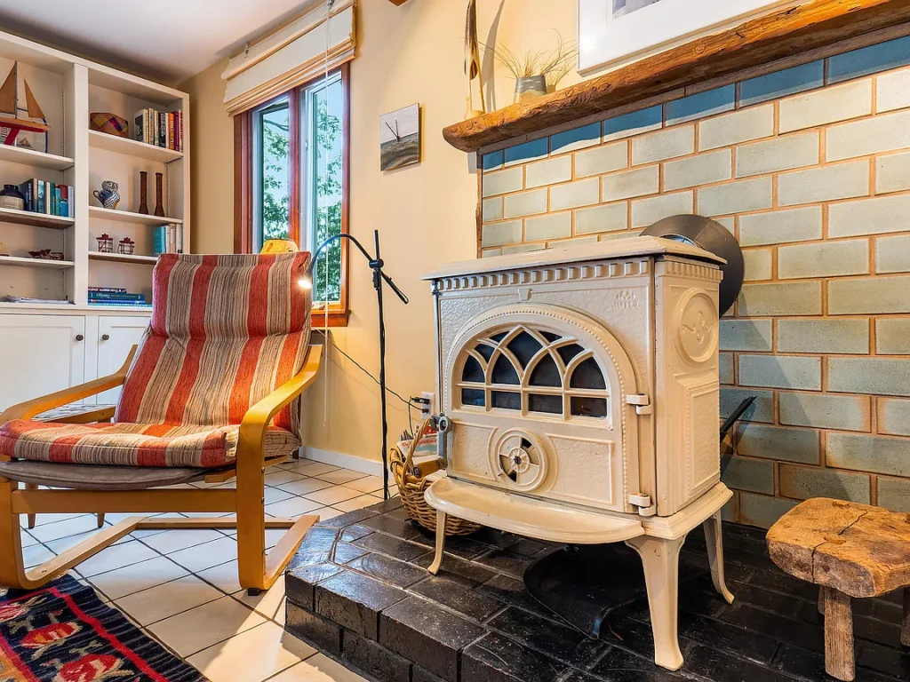 • A cozy wood stove that adds ambiance and comfort during cooler seasons