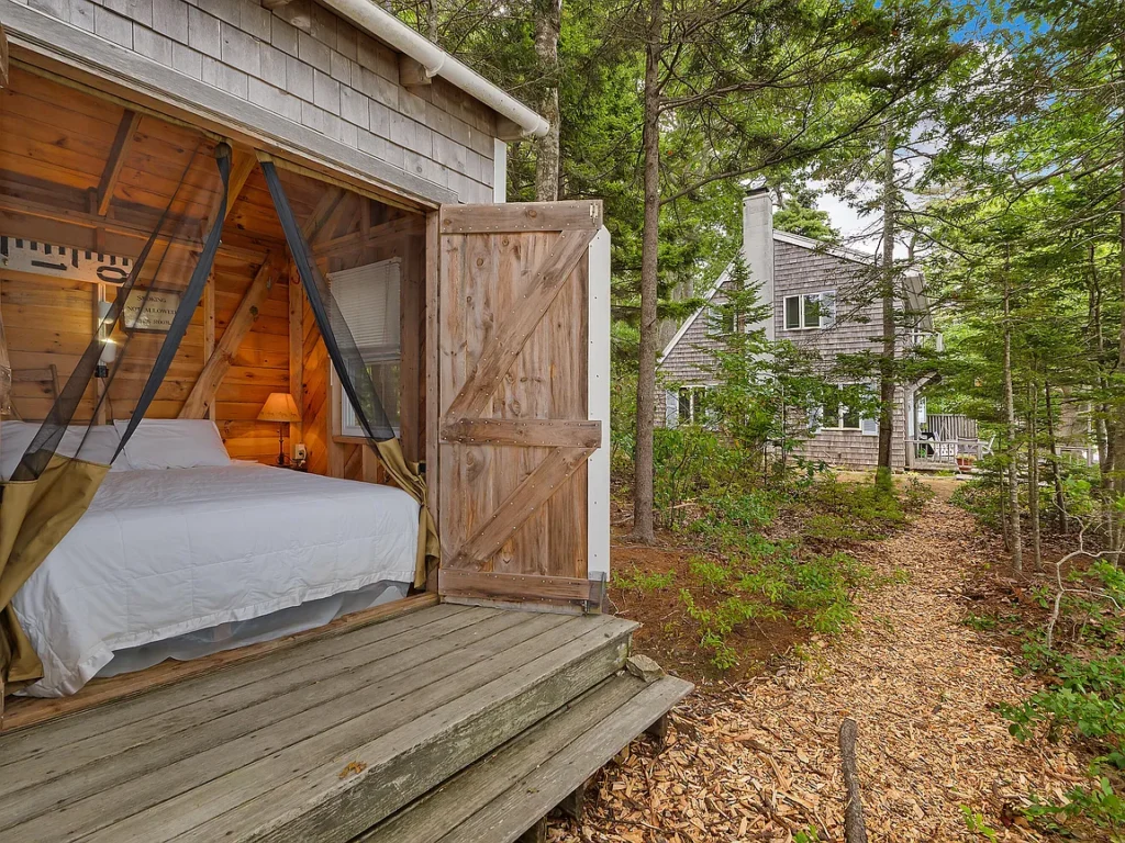 Adding to the property’s unique appeal is a detached sleeping cabin. This charming structure offers: