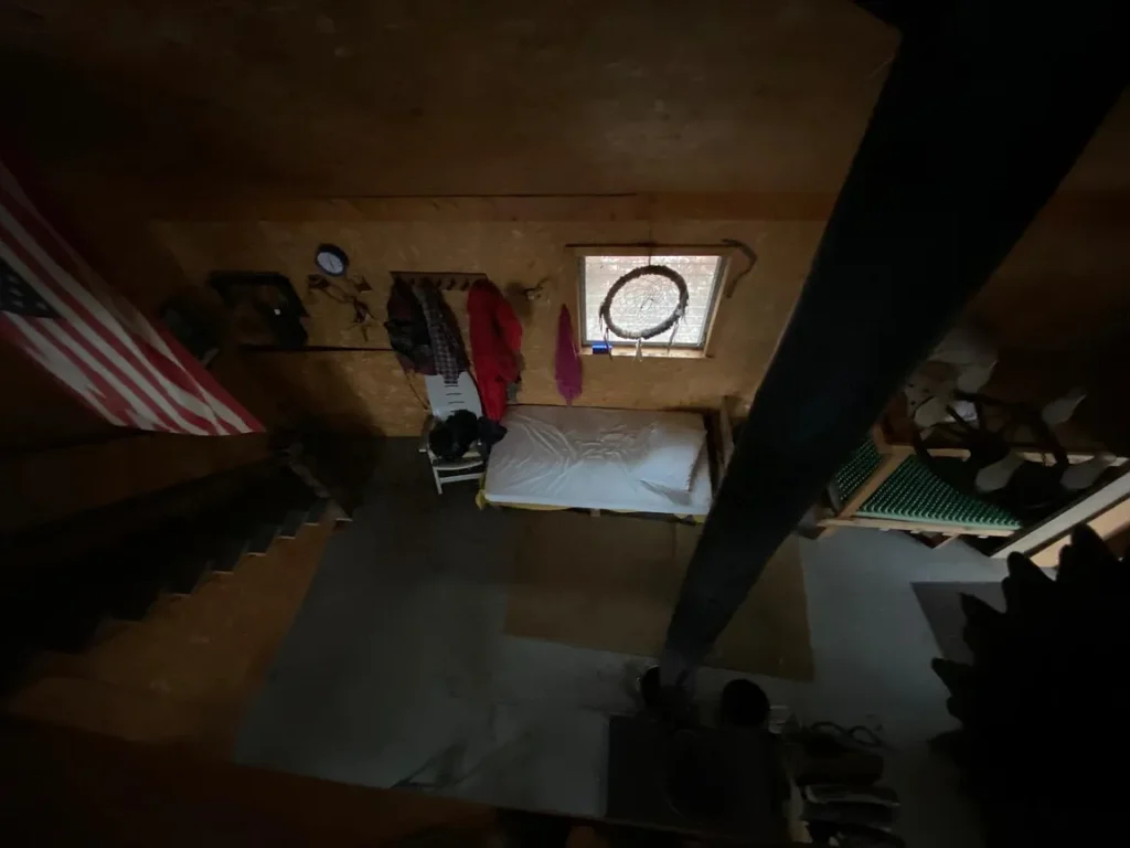 The cabin was constructed on oak beams, with all aluminum studs, making it both strong and resistant to the challenges of a remote setting. It has been thoughtfully equipped to support off-grid living while maintaining a cozy, rustic feel.