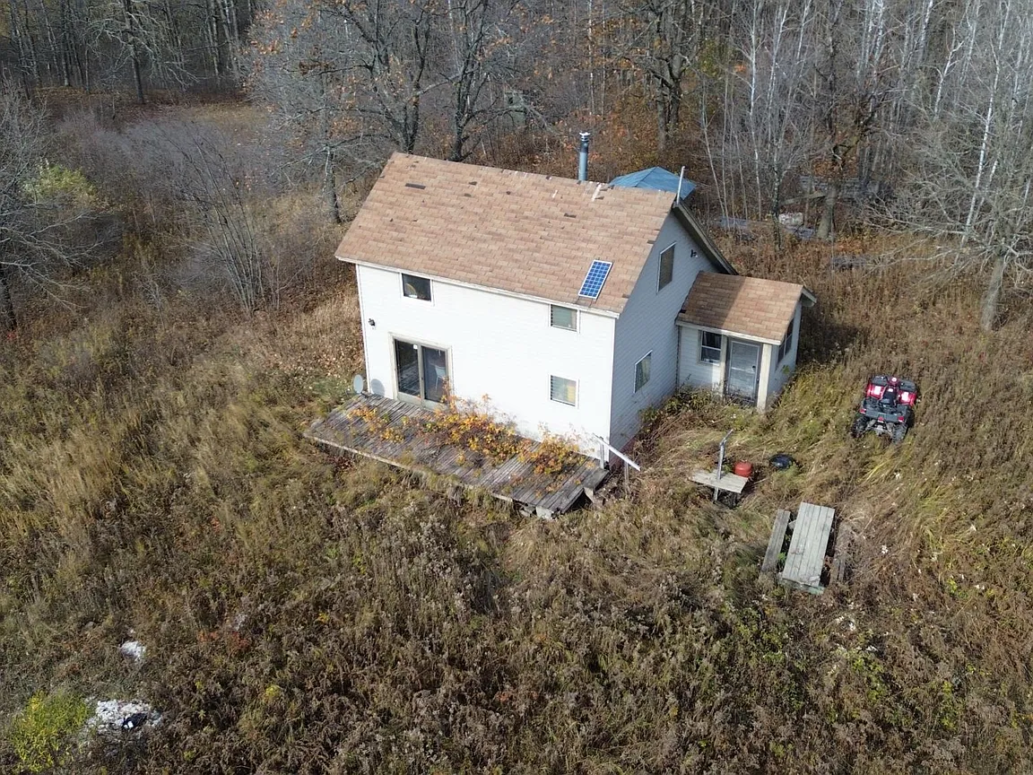 The property consists of a beautiful mix of wooded acreage, rolling terrain, and higher open ground, creating endless opportunities for outdoor use. Mature oak trees dominate much of the landscape, providing excellent wildlife habitat and a classic Northwoods feel.