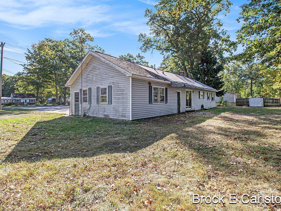Dining area with slider leading to a spacious, partially fenced backyard—perfect for entertaining or relaxing