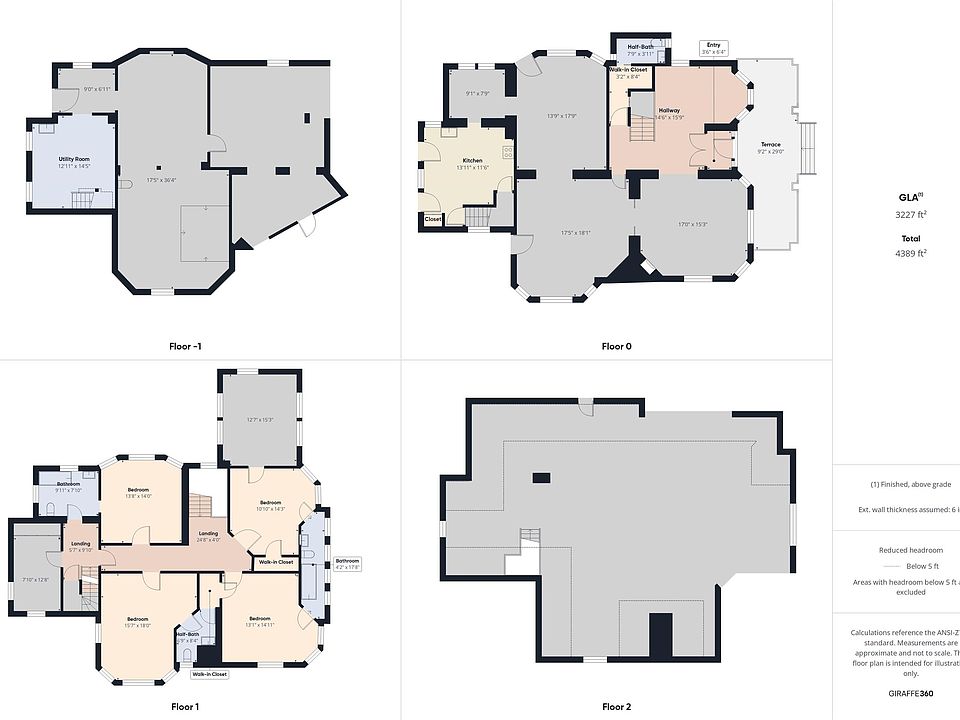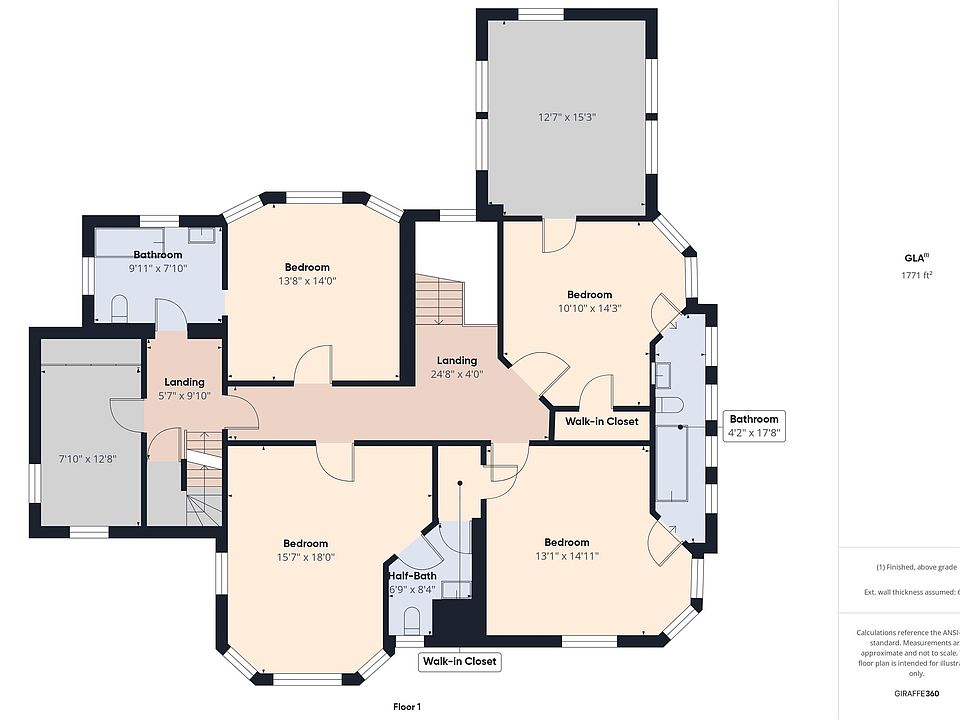 • One bedroom with attached full bath (shared access to 5th bedroom)