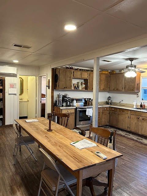 The living areas provide a cozy gathering space for family and friends. With thoughtful updates—such as fresh paint, updated flooring, and modern fixtures—the interior could be transformed into a bright, inviting haven. The kitchen offers the potential to become the heart of the home, with room to upgrade cabinetry, countertops, and appliances to suit your taste and lifestyle. Whether you enjoy cooking elaborate meals or hosting weekend get-togethers, this space can evolve into a functional and stylish centerpiece.