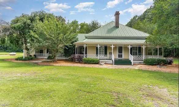 Charming Southern Farmhouse Retreat on Sprawling Acreage. Step back in time with this beautifully maintained classic Southern farmhouse, featuring a wraparound porch, charming architectural details, and tranquil surroundings. Nestled on a spacious and private lot, this 3-bedroom, 2-bath home boasts timeless appeal with modern comforts. The inviting front porch with intricate trim work and rocking chair space welcomes you home, perfect for enjoying peaceful mornings or vibrant sunsets. Inside, you’ll find a warm and welcoming interior with hardwood floors, high ceilings, and ample natural light throughout. A metal roof adds both charm and durability, while mature trees and thoughtful landscaping enhance the idyllic country setting. The property includes a detached structure perfect for storage or an outdoor workshop. There’s plenty of room for gardening, recreation, or simply enjoying nature’s beauty. Whether you’re looking for a quiet retreat, a charming family home, or a property with character and room to grow, this picturesque gem is a must-see. There is a lot of potential for this charming historic home.