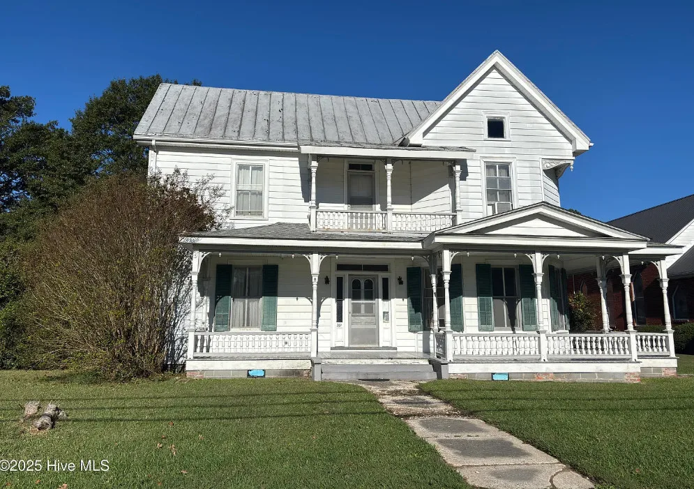 The Boone-Jones House was built around 1880 and is a two-story, gable-and-wing, Queen Anne-style home. The home sits on Main Street and is noted as a contributing structure in the Winton Historic District, which is on the National Register of Historic Places. There are three bedrooms and two full baths, a living room, dining room, laundry/mud room, along with a screened side porch, a wrap-around front porch and an upstairs balcony. Most of the historical elements are still present in the home, such as beautiful wood detail, original wood floors, mantles, etc. The home has baseboard heat and window unit a/c. The homesite runs all the way from West Main Street, along West Richard Street and the rear of the property runs along King Street. The property then adjoins Winton Baptist Church, for a total of about 0.5 acres. There are several fruiting trees/shrubs and a storage building in the rear yard. The home seems solid and has so much potential. A little paint and elbow grease will make her into a beautiful showplace again. Winton is the county seat for Hertford County, and it sits on the Chowan River. The home is only minutes to the Hertford County Courthouse and county offices, about a 10 minute drive to Murfreesboro or Ahoskie, and about 30 minutes to Suffolk, VA.