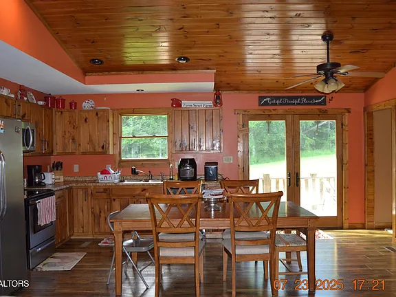 The views from the property further enhance its appeal. Surrounded by a mix of mountain scenery, wooded areas, and open countryside, every direction offers something unique. Mornings are often greeted with soft light filtering through the trees, while evenings bring expansive skies filled with color. These natural moments become part of your daily routine, adding a sense of peace and continuity to life here.