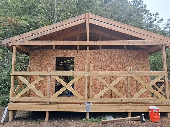 Adding immediate value to the land is an existing 20 x 20 unfinished cabin. This structure provides a solid foundation for creating a comfortable and functional living space. The cabin features a cathedral ceiling, giving the interior an open and airy feel that enhances the sense of space. The design allows for creative customization, whether you want a rustic hunting cabin or a cozy off-grid retreat. Attached to the cabin is a 5-foot covered porch, which offers a perfect spot to relax, enjoy the surrounding scenery, and take in the peaceful atmosphere of the forest.