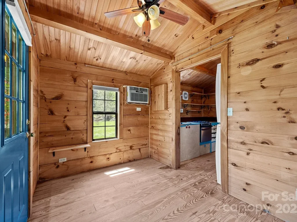 The property features a 312-square-foot park model tiny home, perfectly positioned to take advantage of the surrounding natural beauty. Designed for comfort and efficiency, the home offers a cozy yet functional living space that makes full use of its footprint.