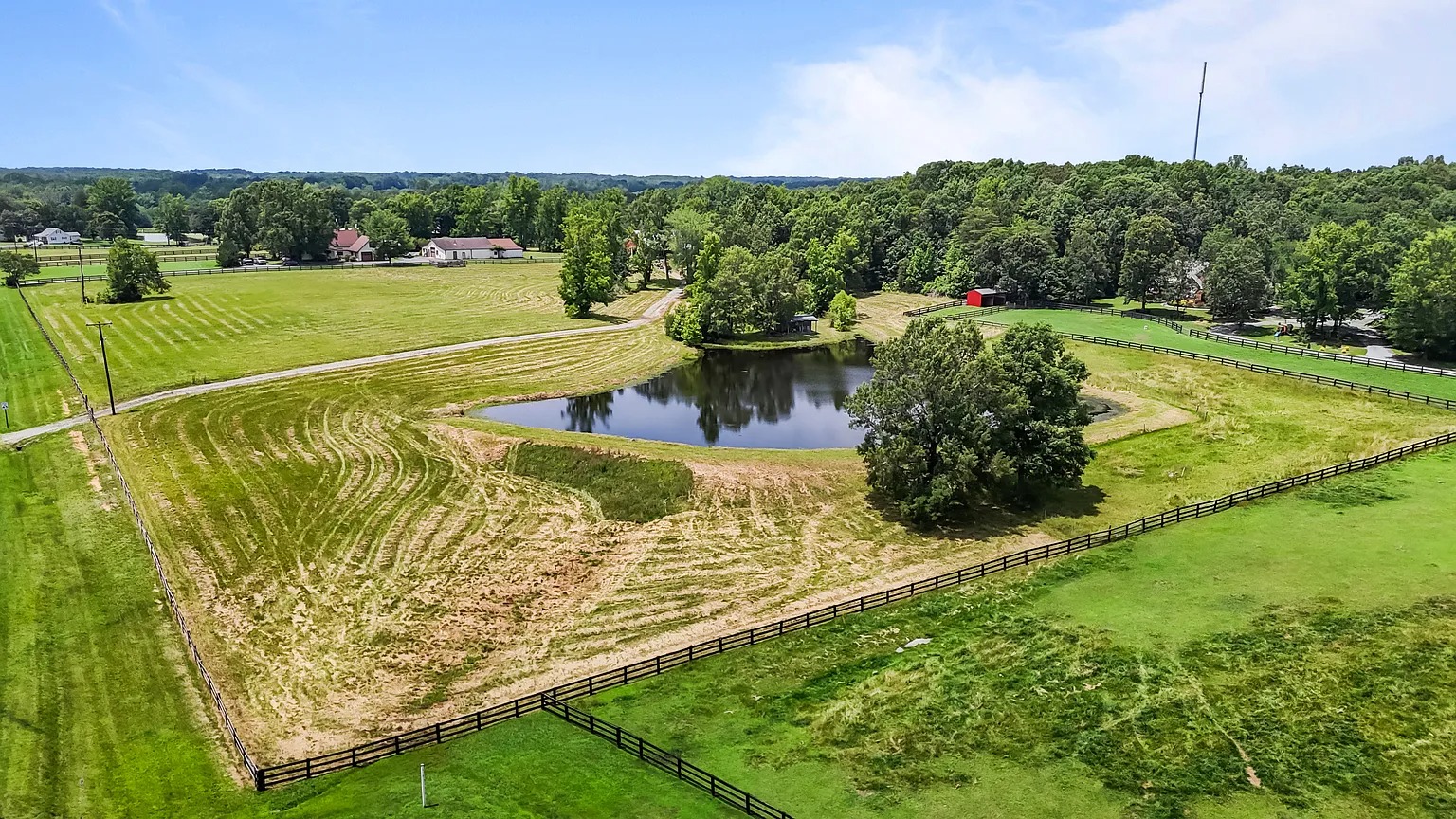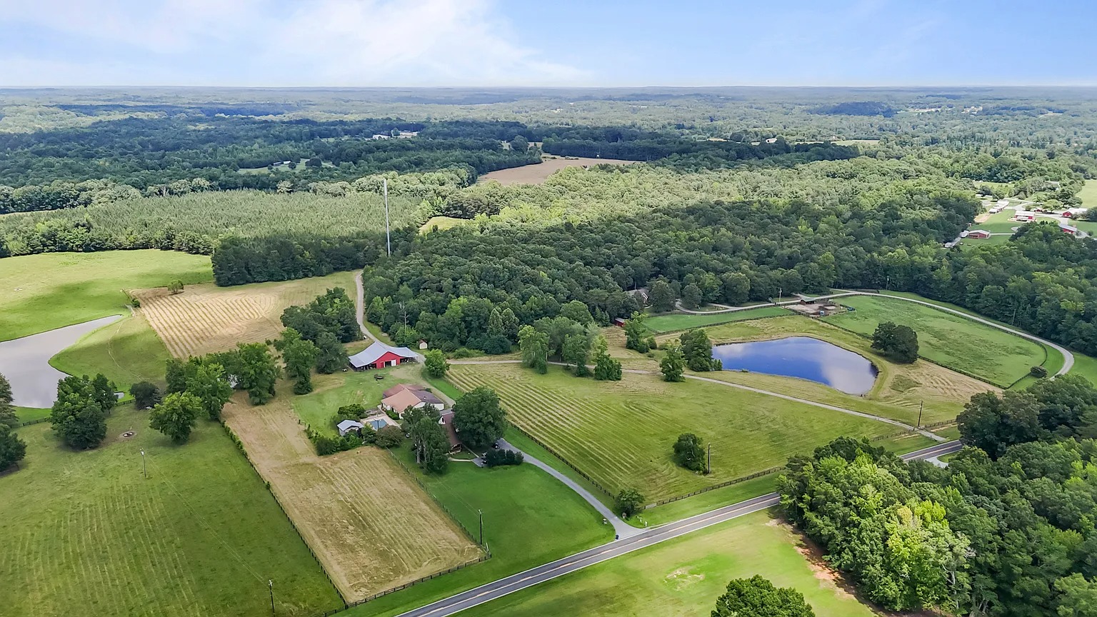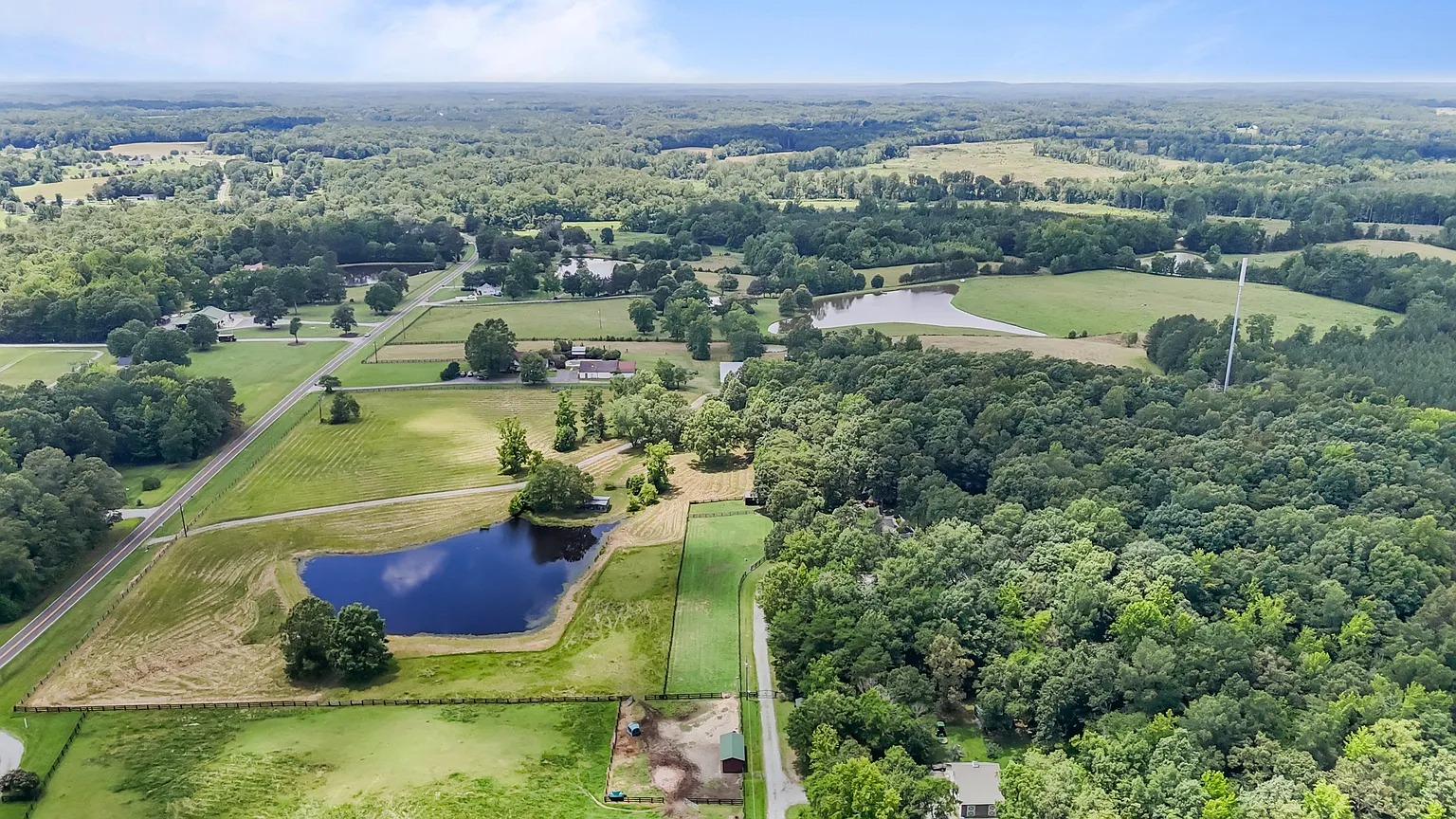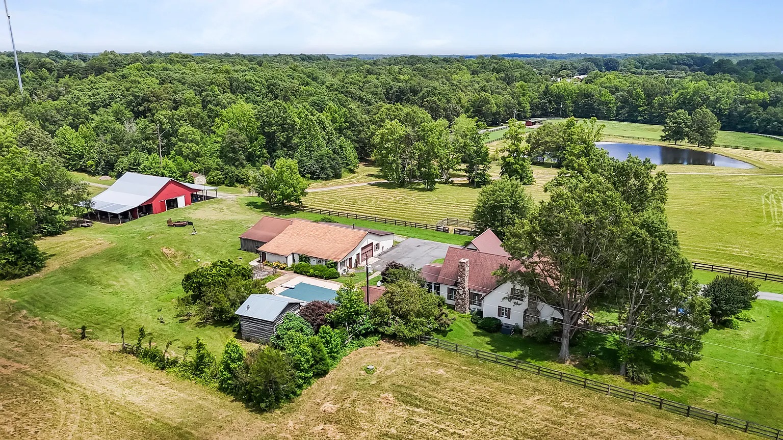 This 4 bedroom, 2 bathroom home sits on 23.77 acres in Mebane, North Carolina. The property includes a working farm setup, several outbuildings, and open pastureland. Because of the land size and layout, it could suit someone interested in homesteading or country living. At the same time, the additional structures create options for workshops, storage, or rental use. The setting features rolling hills and a mix of open fields and wooded areas. Overall, it offers flexibility for different long-term plans.