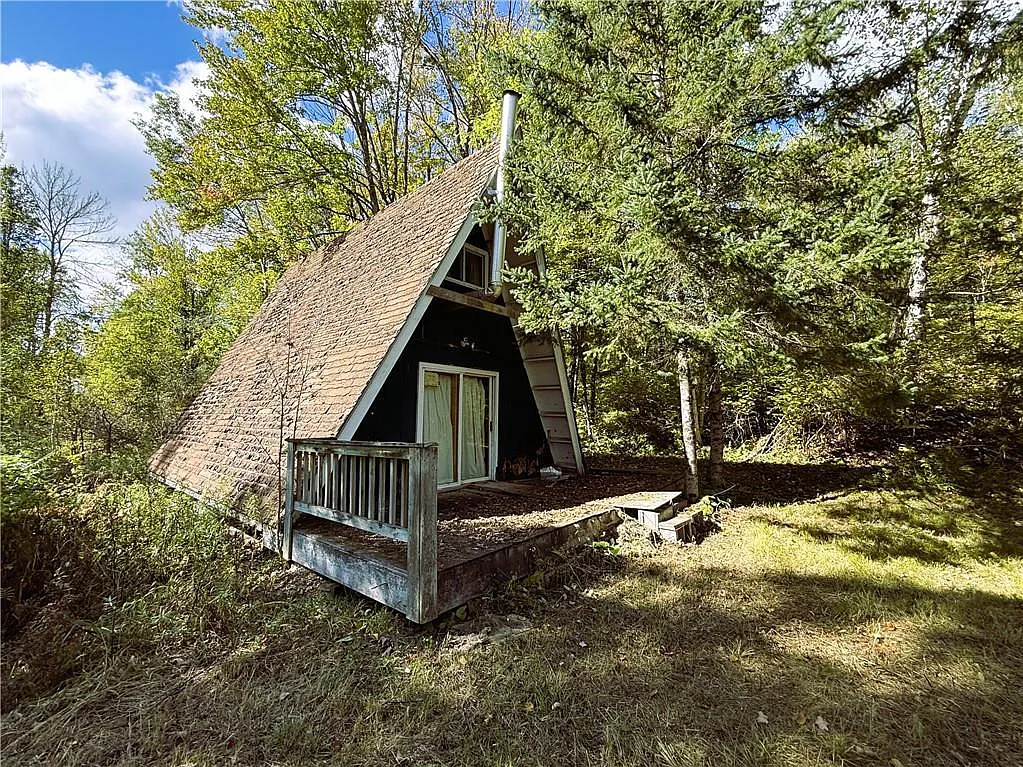️ Older A-frame cabin included – currently tilted, intended for relocation onto an existing foundation