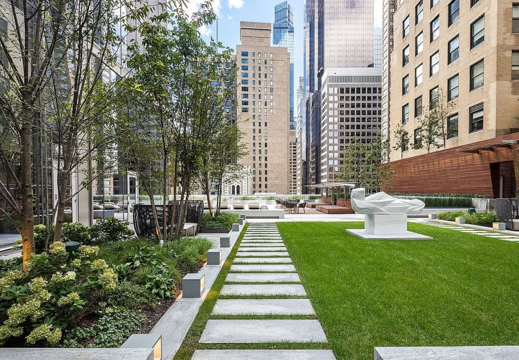 Amenities include a 63-foot heated saltwater swimming pool, ideal for year-round enjoyment, as well as a windowed basketball and squash court designed for both recreation and wellness. A beautifully curated sculpture garden features a 60-foot outdoor pool and sundeck, complete with food and beverage service, creating a resort-like atmosphere high above the city. Residents also enjoy access to a state-of-the-art fitness center, spa and wellness facilities, game rooms, resident lounges, a private theater, and a fully equipped business center.