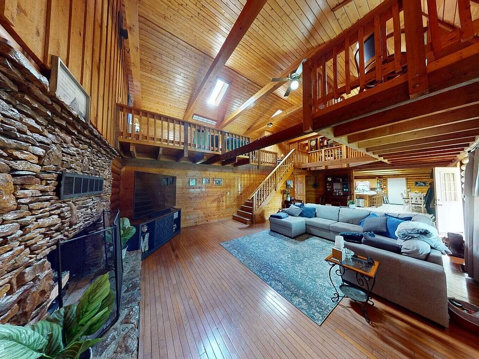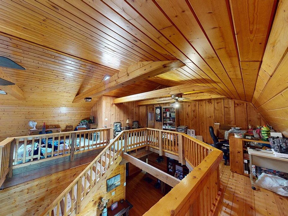 At the heart of the property sits a charming 3-bedroom, 2-bath log home that perfectly complements its scenic surroundings. The timeless appeal of natural wood construction blends seamlessly with the landscape, creating a warm and inviting atmosphere both inside and out.