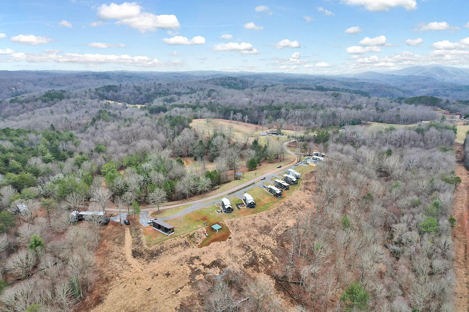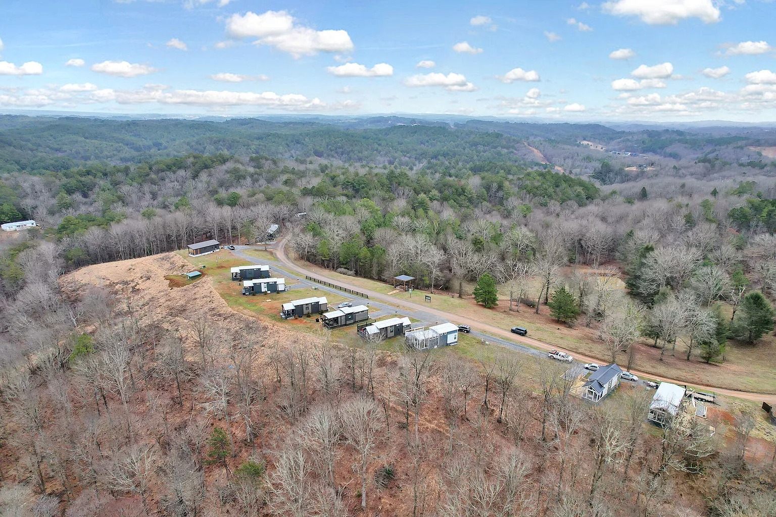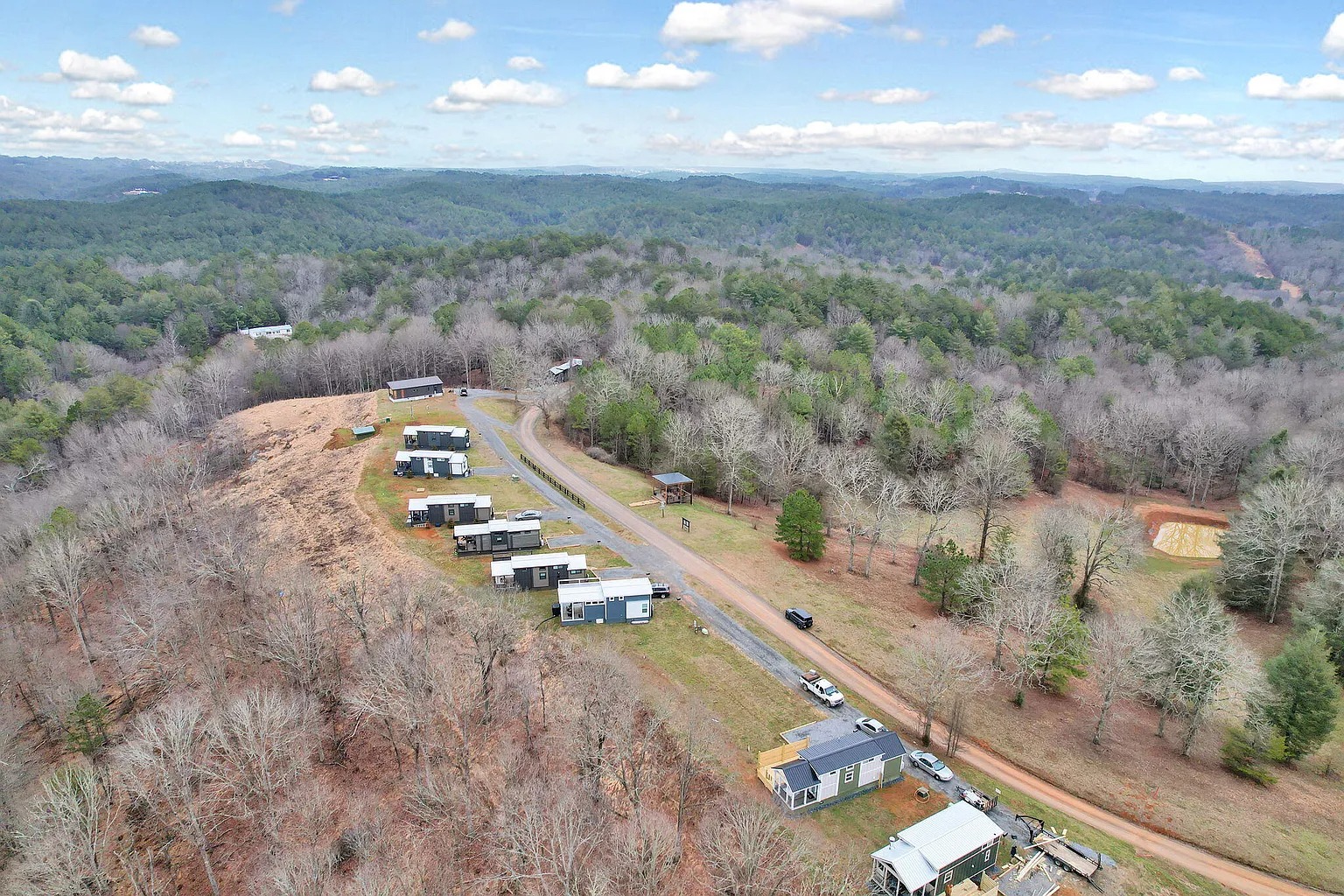This $155,000 tiny home in Copperhill, Tennessee offers 42.02 acres of mountain land. The home includes two bedrooms and one bathroom. It provides 394 square feet of interior space. Buyers searching for homes with land in Tennessee may see value here. In addition, the property comes fully furnished. Therefore, it may suit short-term rental investors or second-home buyers.