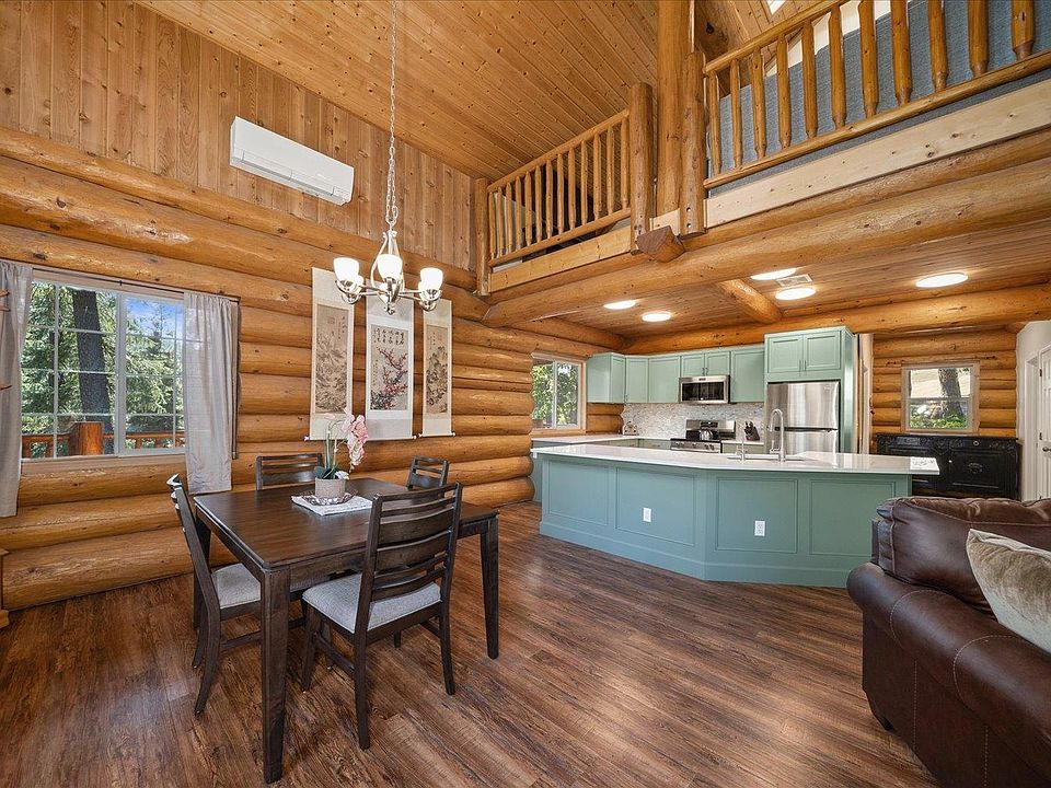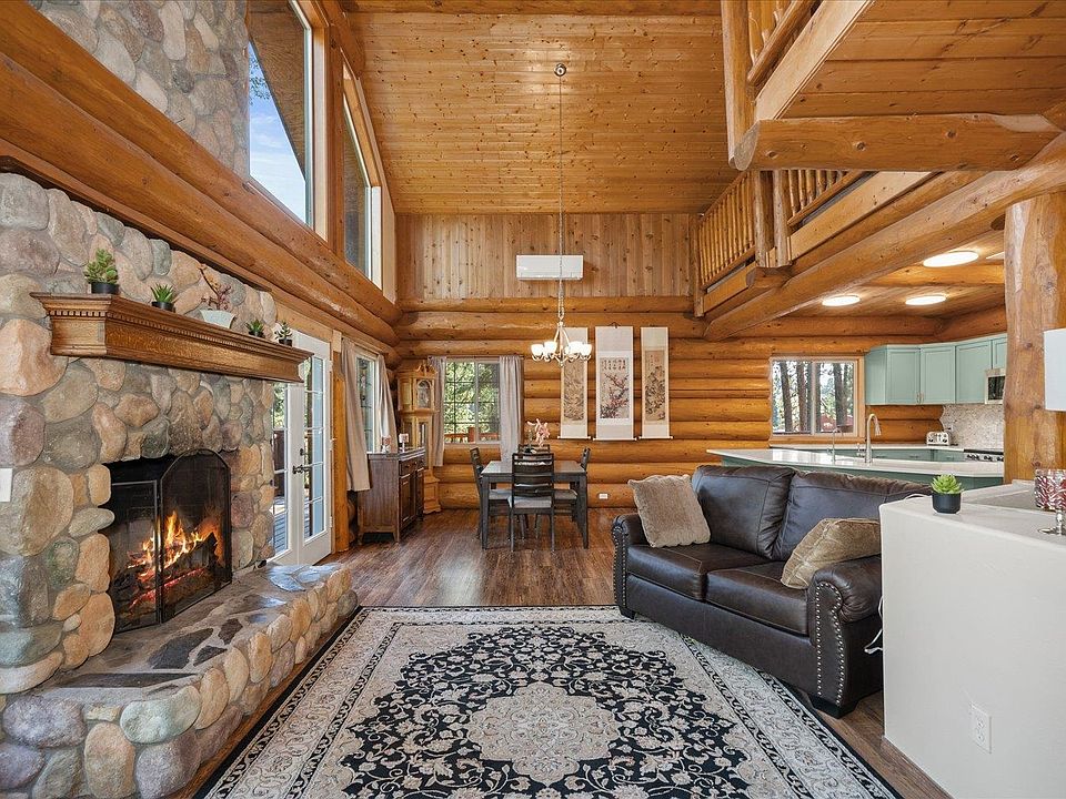 Tucked away on a secluded 5.5-acre parcel surrounded by towering evergreens and natural beauty, this stunning two-story log home offers the rare opportunity to enjoy peaceful country living without sacrificing convenience. Perfectly positioned in the highly sought-after Mead School District, the property is just five minutes from Highway 395 and a quick eight-minute drive to Wandermere’s shopping, dining, and everyday amenities. Whether you’re commuting, entertaining, or simply enjoying the serenity of your surroundings, this home strikes the ideal balance between privacy, accessibility, and lifestyle.