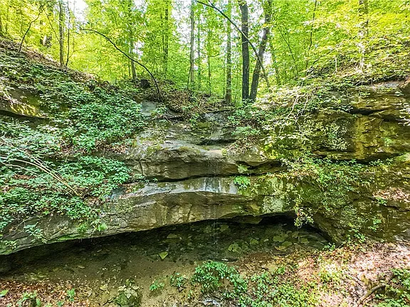 The land features several seasonal creeks that meander through the woods, adding both beauty and character. In several areas, the water has carved out impressive rock formations and caves, creating a landscape full of natural wonder and discovery.