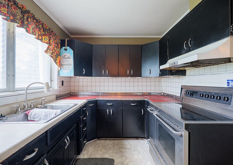 At the heart of the home, the kitchen is a true retro showpiece. The authentic Youngstown Metal kitchen cabinets—a highly sought-after feature among mid-century enthusiasts—stand as a testament to the innovation and durability of 1950s design. These iconic cabinets pair functionality with vintage style, offering a nostalgic nod to the past while remaining remarkably practical. Whether you choose to preserve their originality or incorporate subtle updates, this kitchen offers a unique blend of charm and potential.