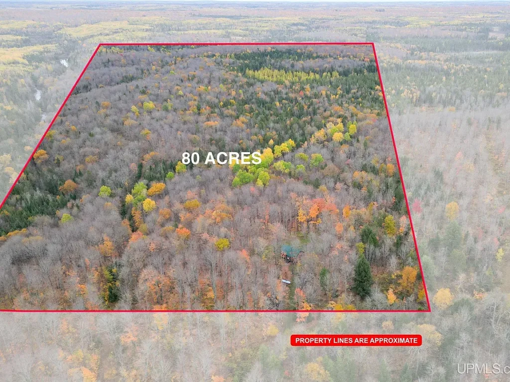 Hidden deep within the tranquil forests of Michigan’s Upper Peninsula, this classic UP log cabin offers an extraordinary opportunity to own a slice of unspoiled wilderness in the heart of Iron County. Resting gracefully on 80 acres of beautifully wooded land, this property captures everything that makes northern living so unique—towering hardwoods, abundant wildlife, the soothing murmur of a clear river, and the comforting warmth of a woodstove on a crisp autumn night.